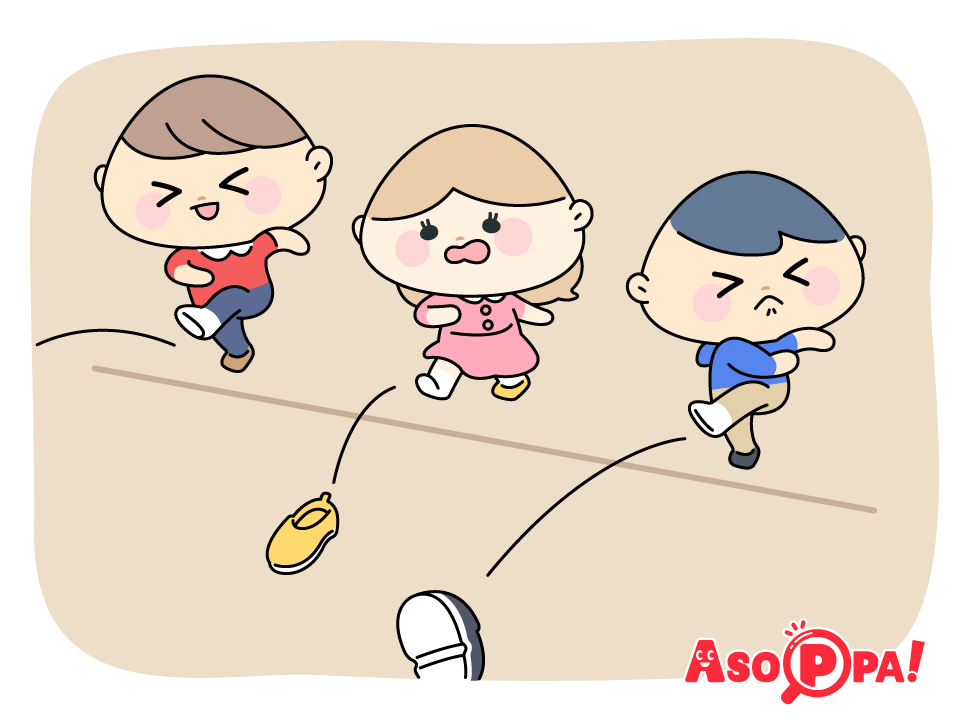 みなさん子どものころに一度はやったことがあるはず!定番の伝承あそび「靴飛ばし」です。