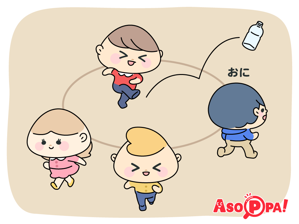 かくれんぼと鬼ごっこの面白さを同時に味わえるあそびです。3人以上からできて、10~20人くらいまで一緒に遊べます♫
