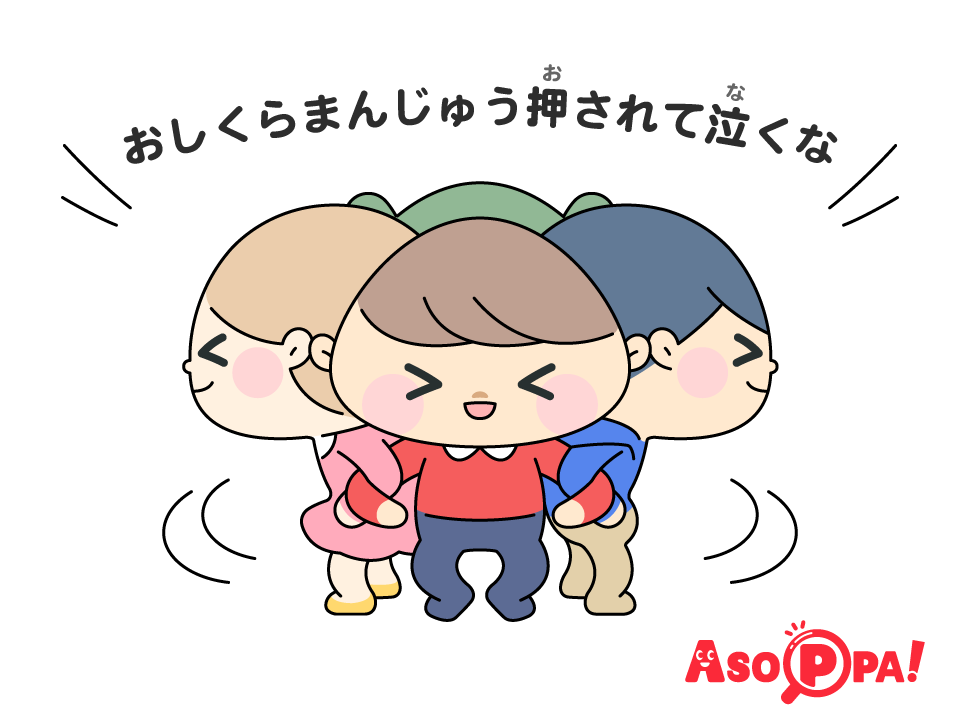 背中合わせになってぎゅうぎゅう押し合う「おしくらまんじゅう」。シンプルですが、子どもたちが夢中になるあそびです!