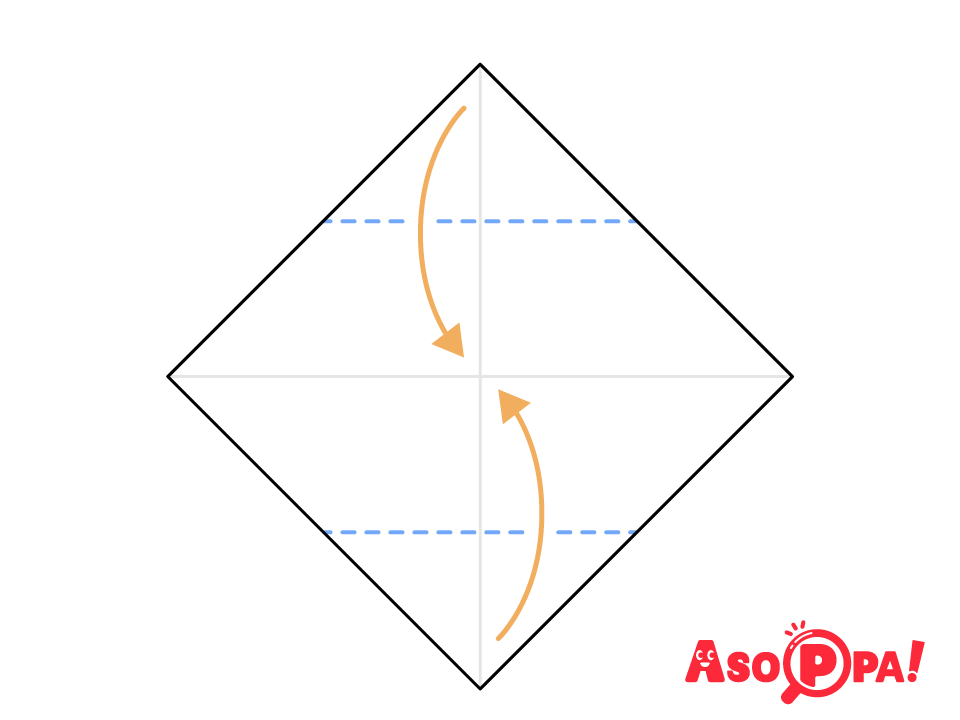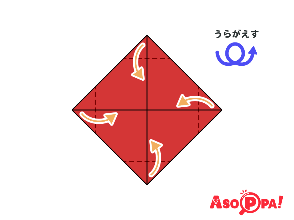 図のように縦横それぞれ三角に半分に折って開く。 -