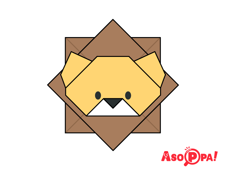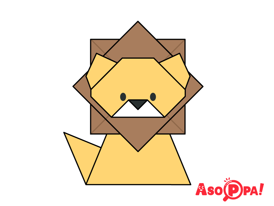 たてがみと顔を貼り付けたらライオンの顔の出来上がり! -