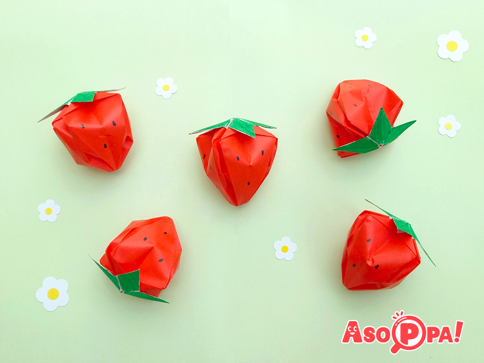 春にぴったりないちごの折り方をご紹介。1枚でヘタ付きの立体いちごが作れます♪ 少し難易度が高いですが、きっと達成感も味わえるはず!? -