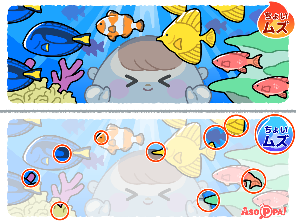 ちょいムズ!まちがいさがし(4)【水族館】|子どもも大人も無料で楽しめる間違い探し