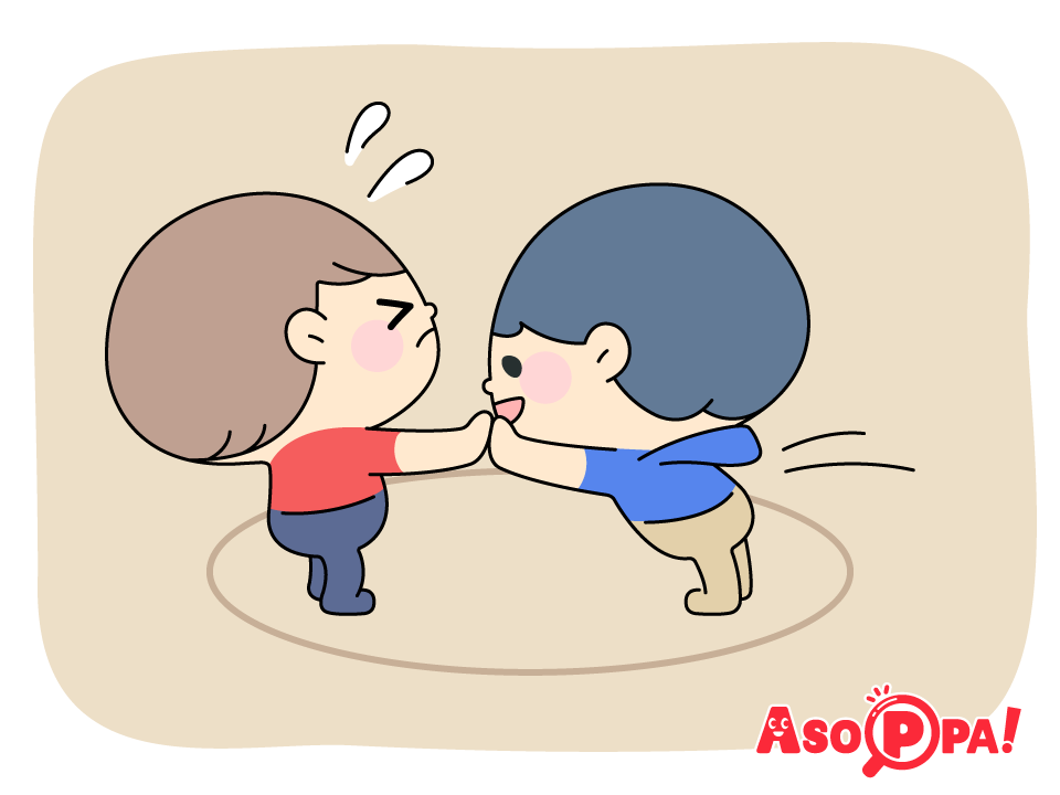 簡単なルールで子どもから大人まで盛り上がる「手押し相撲」。