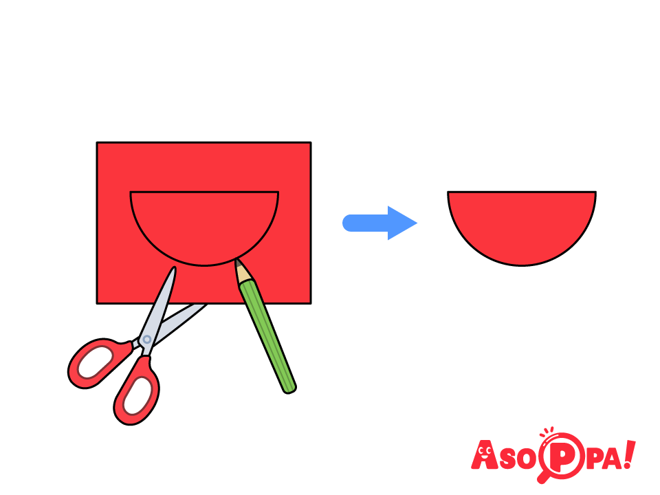 ・半円が小さいとかぶれなくなってしまうので、大きめの画用紙いっぱいに半円を描くように、なるべく大きく作りましょう。