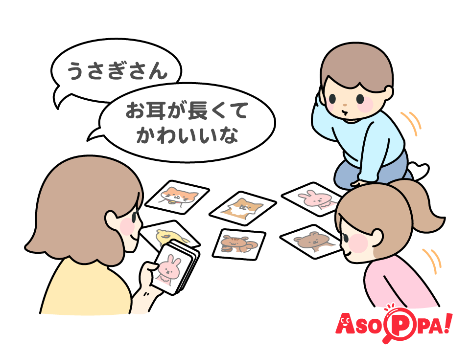 ・リズムカルに言葉を言ってあげましょう。言葉への興味がわいてくるはずです。