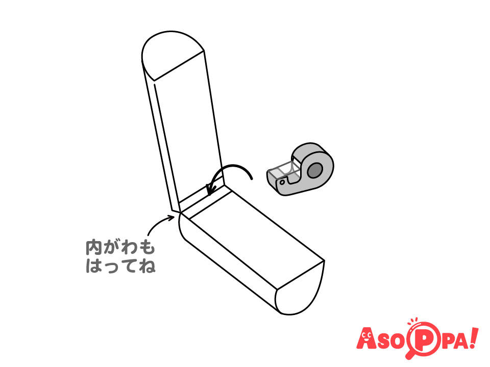 内側と外側両面からセロハンテープで留めて下を繋ぐ。 -