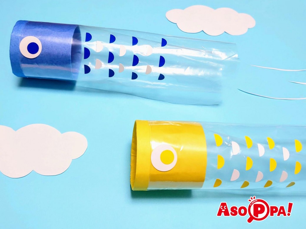こいのぼりの吹き流しは、「青・赤・黄・白・黒」の5色が一般的とされています。ですが、工作なので好きな色で作ってもOKです☆