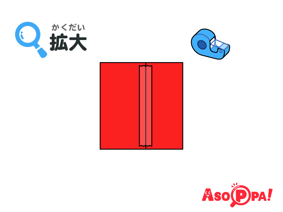 下をセロハンテープで留める。(半分付けて、後ろに折り込むように貼る) -