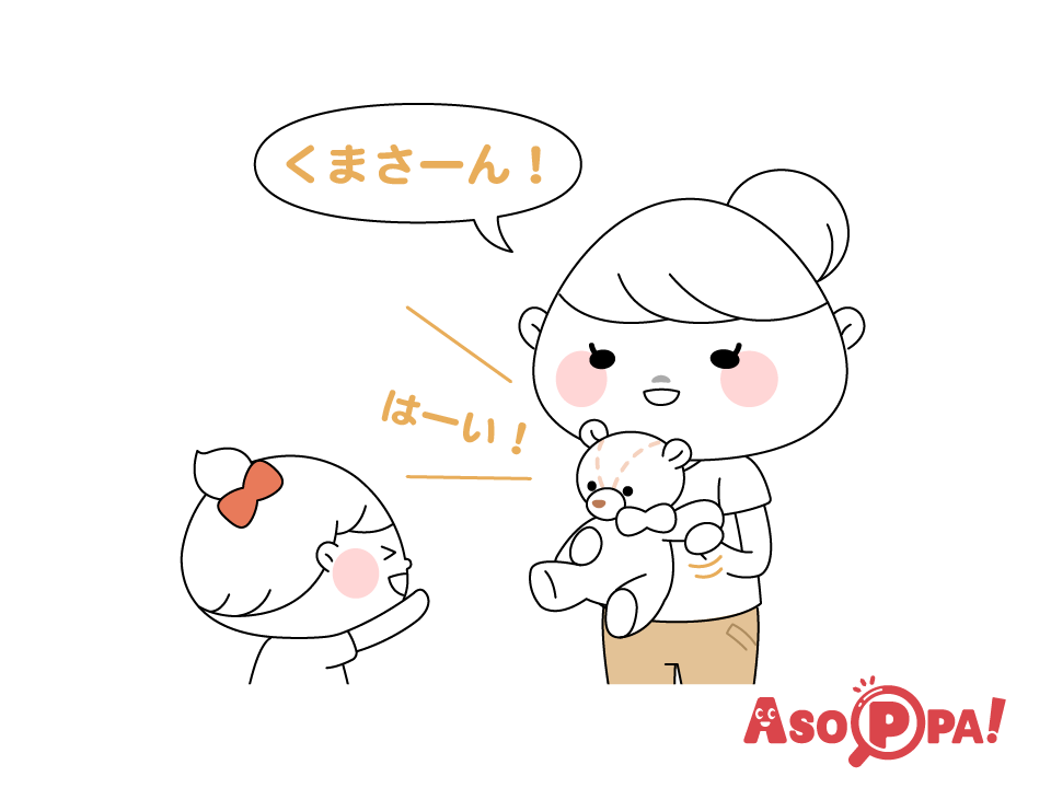 笑顔が大事。返事の練習にもなりますが、返事が目的ではなく、微笑みながら名前を呼んでもらえるという安心感を感じてもらいましょう。