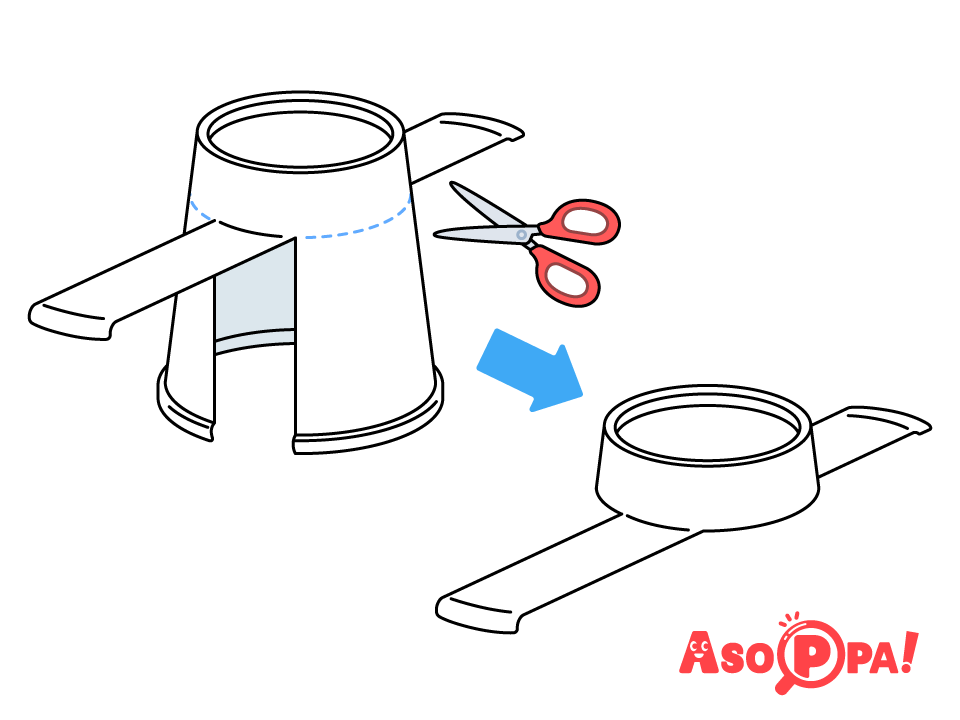 紙コップに切込みを2本入れる(腕に付けるベルトの太さ分)。