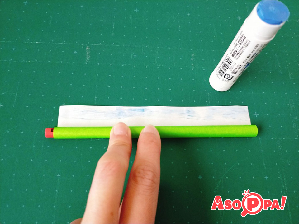 残り1㎝くらいのところまで巻けたら、のりを付けます。 -