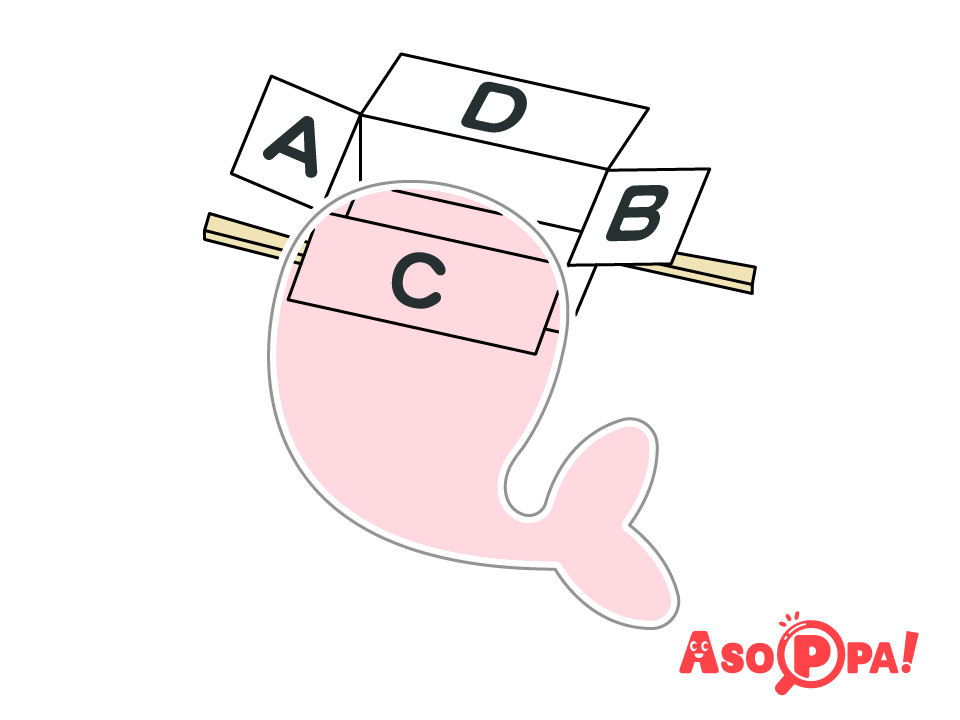 画用紙で人魚を作ったら、パーツは画用紙同士で貼り合わせるのではなく、パーツごとに空き箱に貼り付けるのがポイントです。