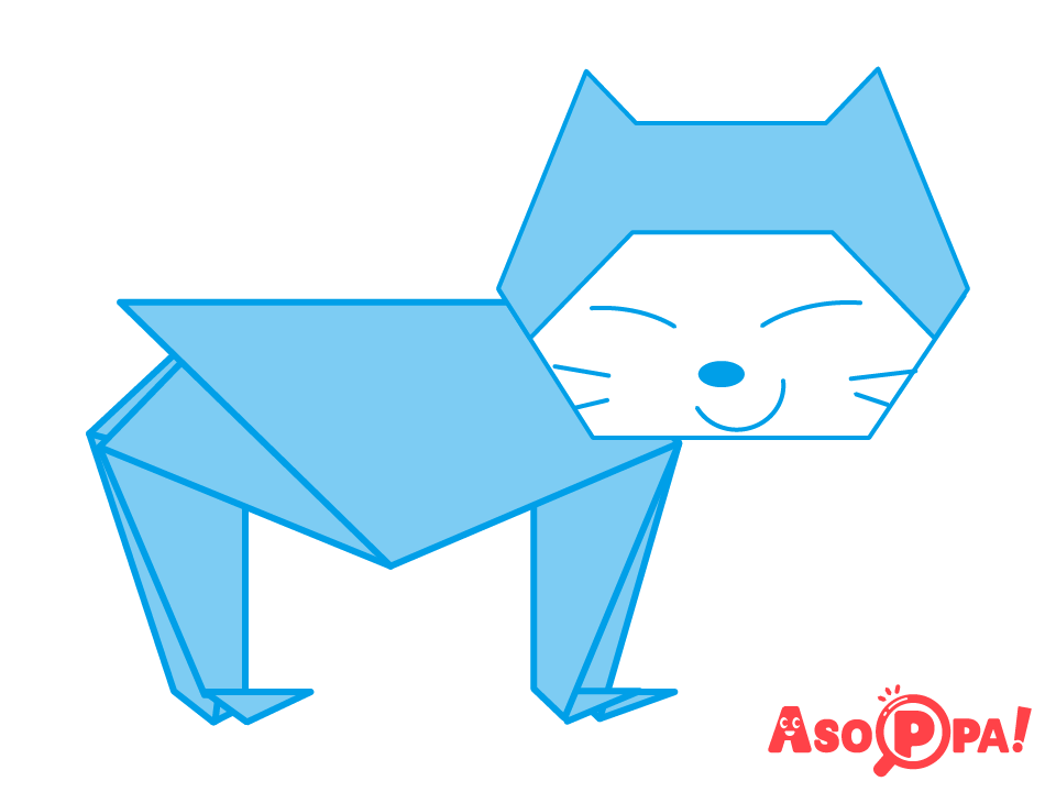 どうぶつの顔だけの折り紙と組み合わせよう。どうぶつのからだの折り方
