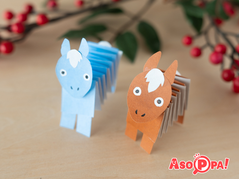 折り紙を細く切って、じゃばら折りにするだけで、小さな馬の置き飾りが作れます。