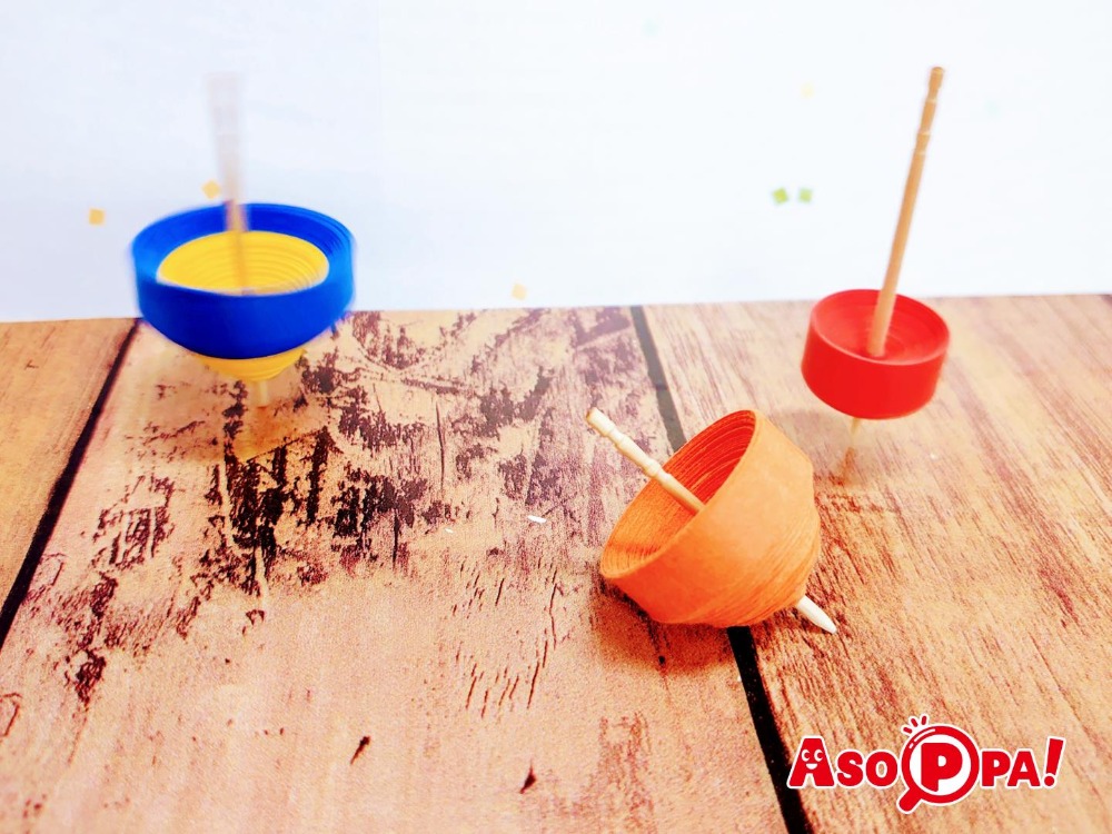 お正月の伝承遊びの大定番! 紙テープでかんたんに作れるこまで遊びましょう。