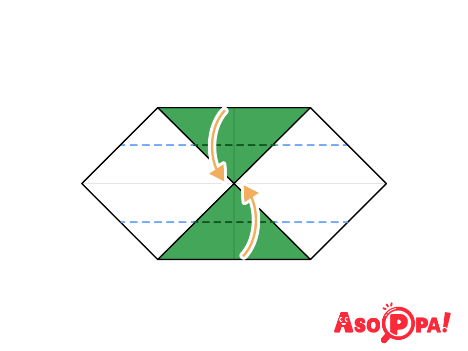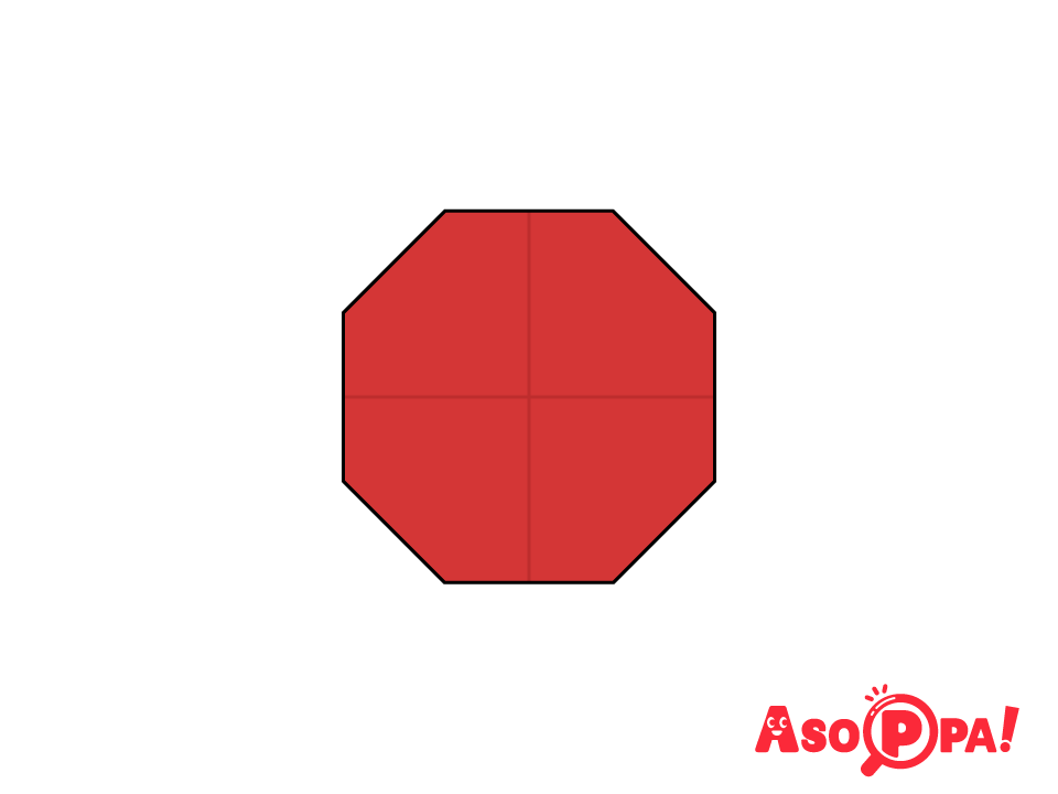 図のように縦横それぞれ三角に半分に折って開く。 -
