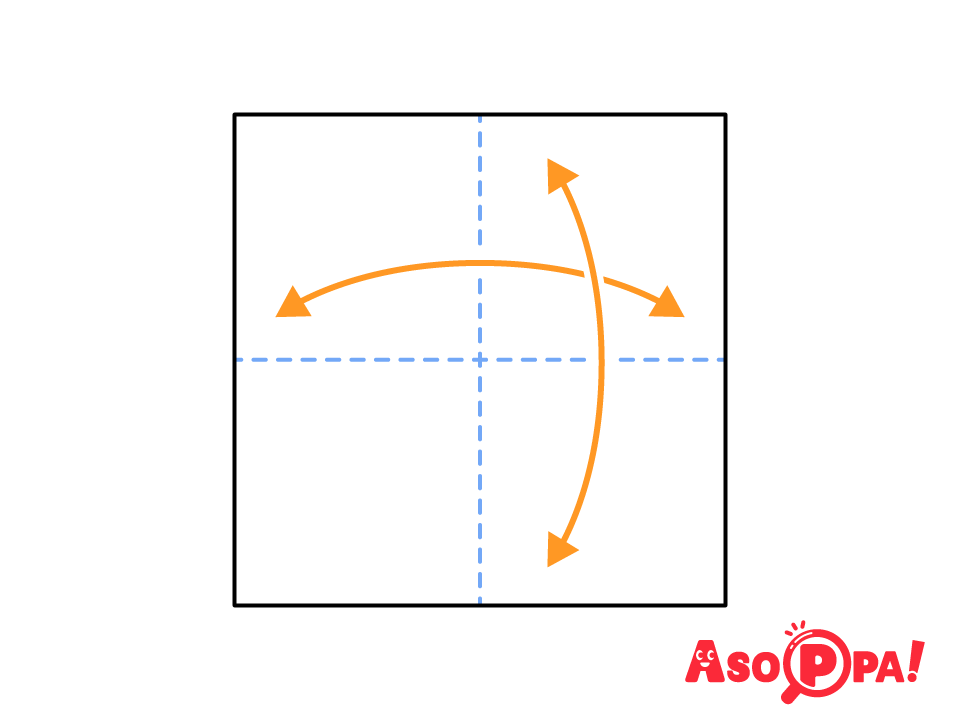 たてがみを作る。折り紙を縦横それぞれ半分に折って折り筋をつける。 -