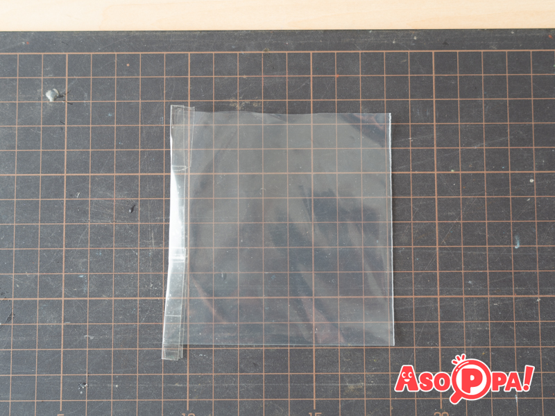 チャック付きビニール袋を、角の部分を残し、円より少し大きめの大きさにカットします。 -