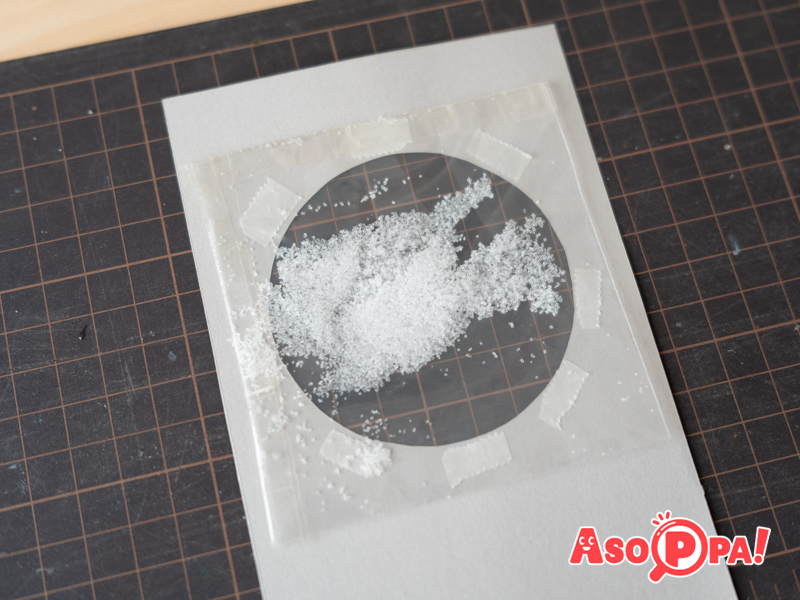 ビニール袋の開いている縁を、塩が出ないようセロテープでしっかり閉じます。 -