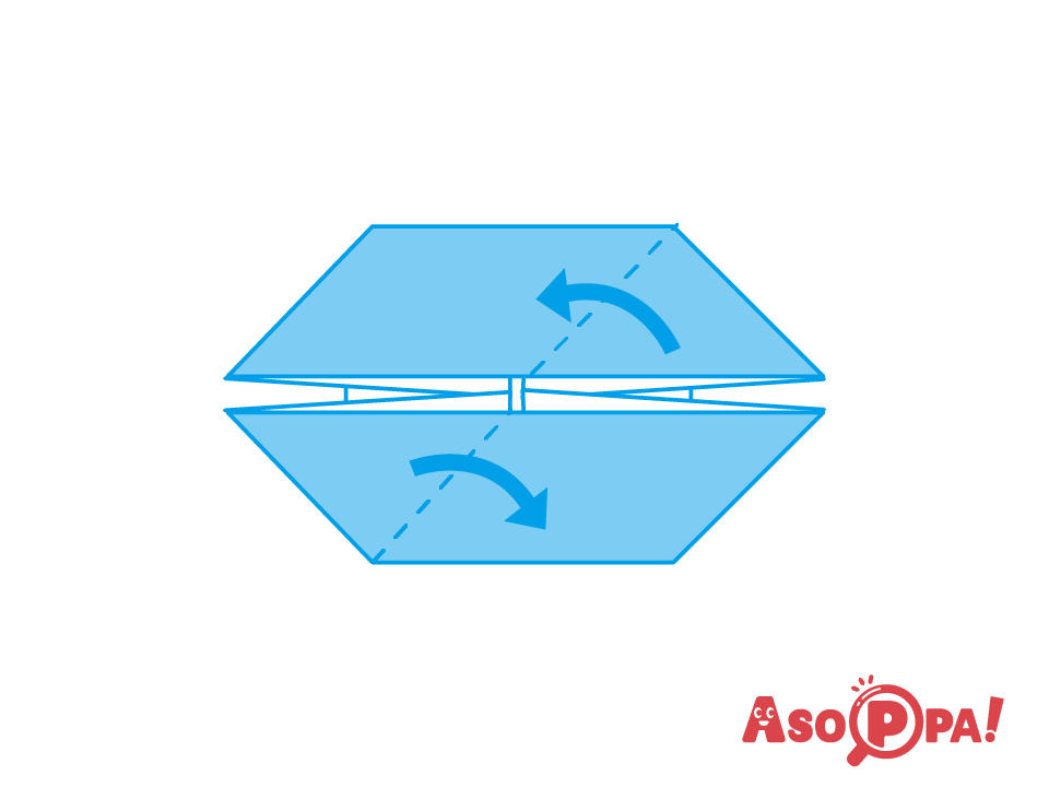 やじるしのところを伸ばすように開く -