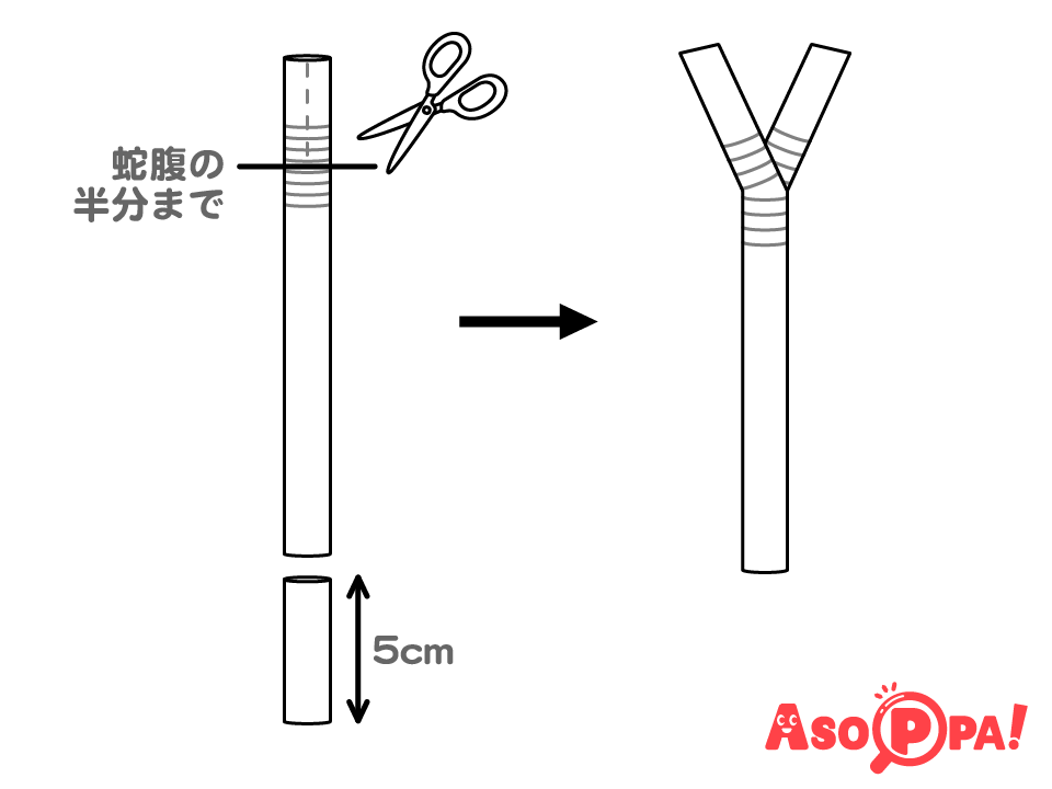 細いストローの片側に1cmの切り込みを2箇所入れて開く。 -