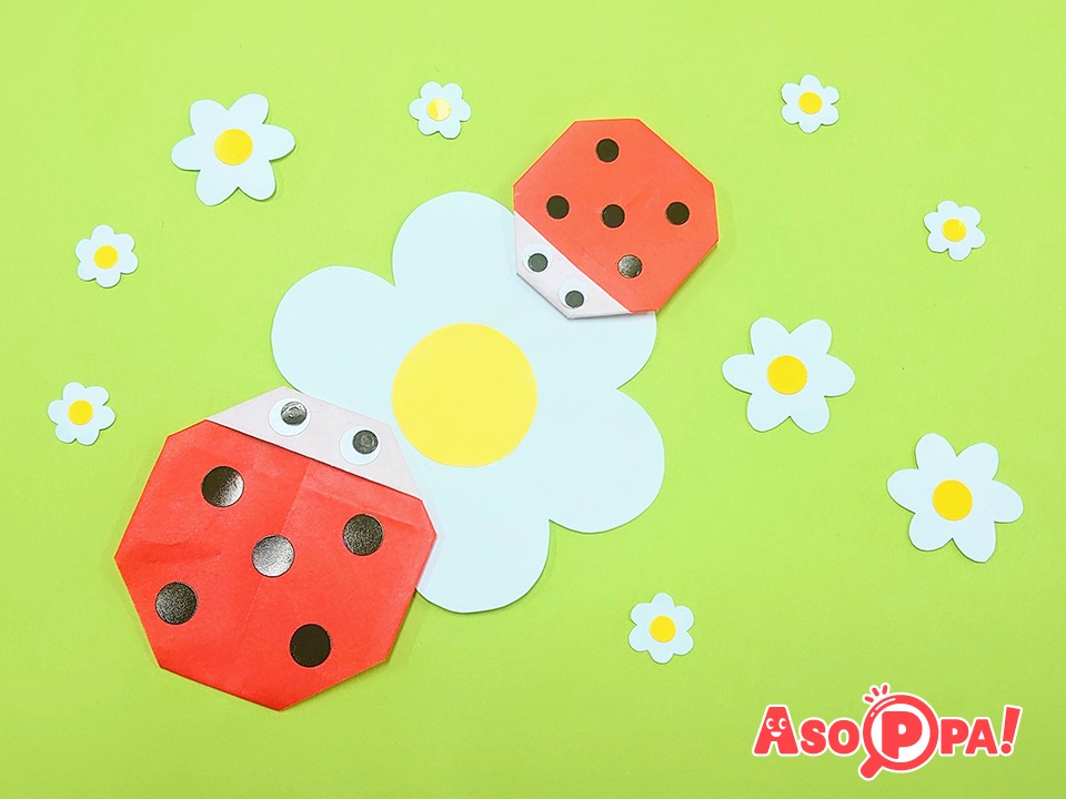 春の昆虫てんとう虫。折り紙でとても簡単に折れる折り方をご紹介します。谷折り・山折りのみで折れるので、小さい子にもおすすめです! -