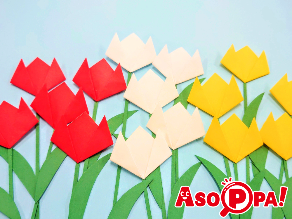春の花といえばチューリップを思い浮かべる方も多いのではないでしょうか。3工程で簡単に折れるので、小さい子にもおすすめ♪ 色とりどりのチューリップを作ってみてくださいね。 -