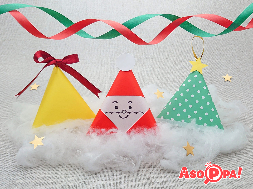 【テトラ型の包み方で作る サンタクロース・ツリー・ベル】(レシピはこちら⇒ID:1192413 )