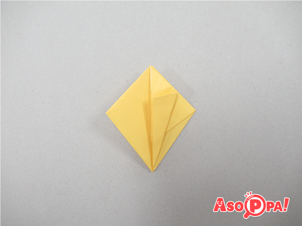 工程①②同様に折り、三角形になるよう折りたたむ。 -