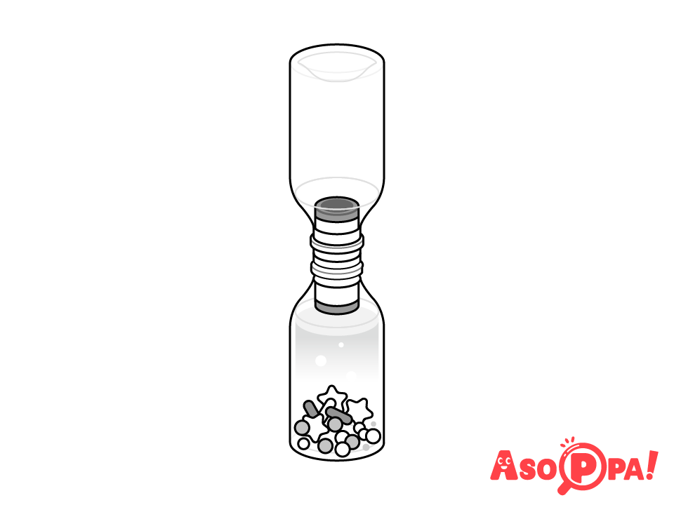 簡単に作れるおもちゃです。水も入っているためどのような音がするのでしょうか…上下に振って遊びます。