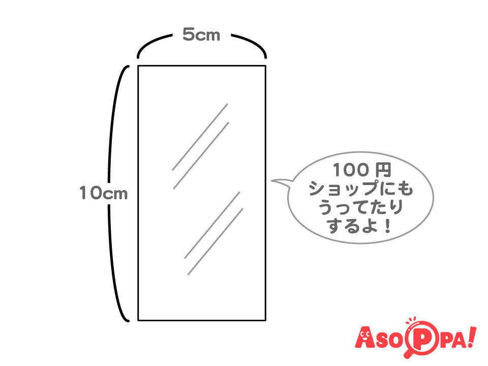 ラッピングに使う金色のポリ袋を縦10センチ、横5センチの長方形に切ります。 -