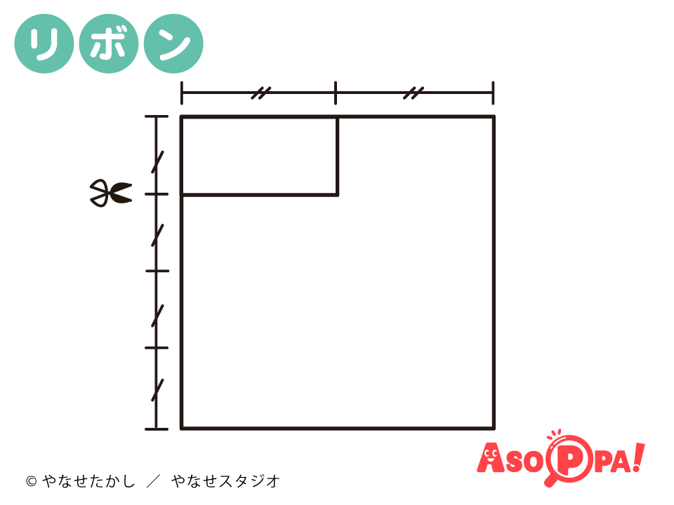 リボン用の折り紙は、図の大きさに切って使用する。 -