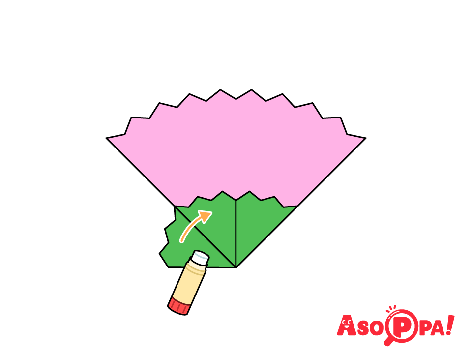 図の向きで、がくを広げた内側(白い面)に入れて貼り付け、裏返す。 -