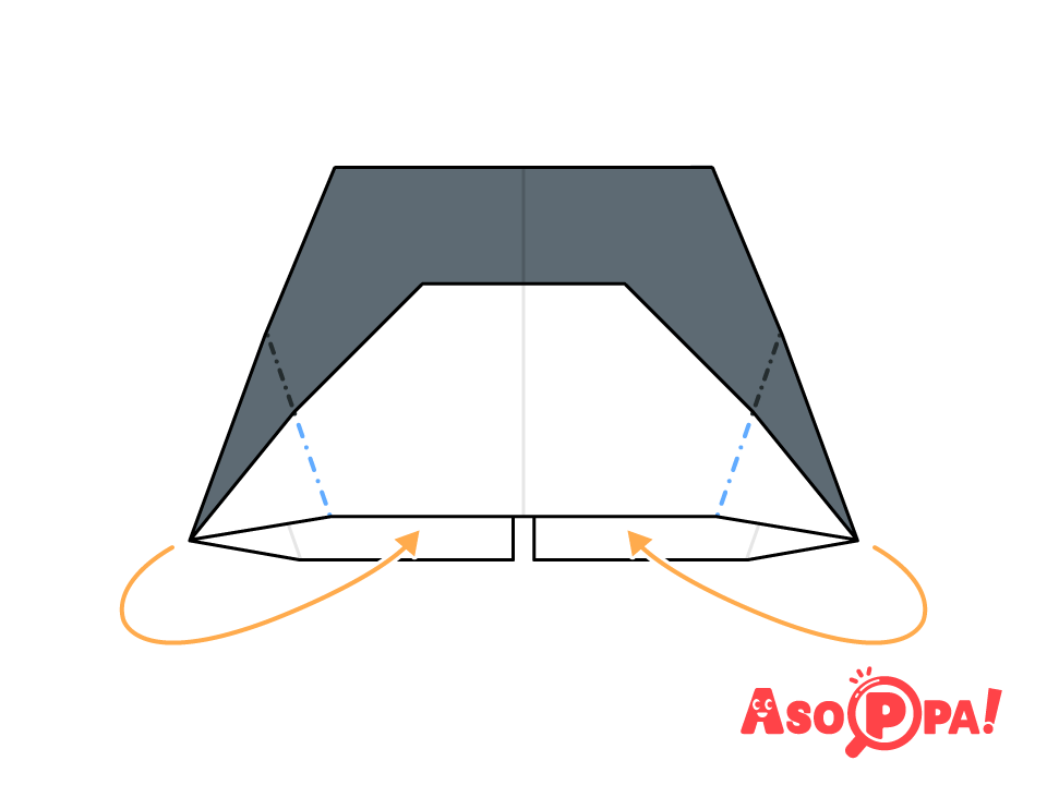 点線で折り目を付け、工程⑧同様に内側に折り込む。 -