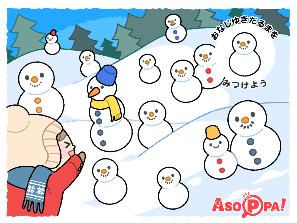 右上の雪だるまと同じ雪だるまを見つけよう!