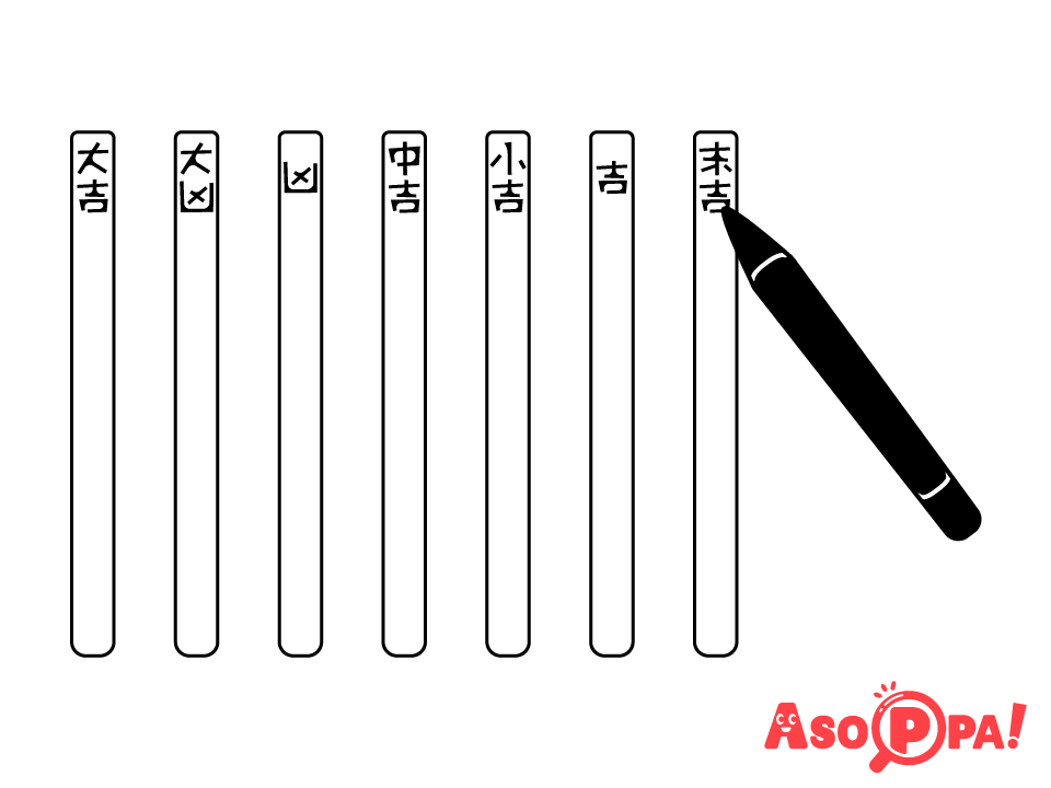 神社で引くおみくじを手作りで。運の良い順番も覚えて遊びましょう!