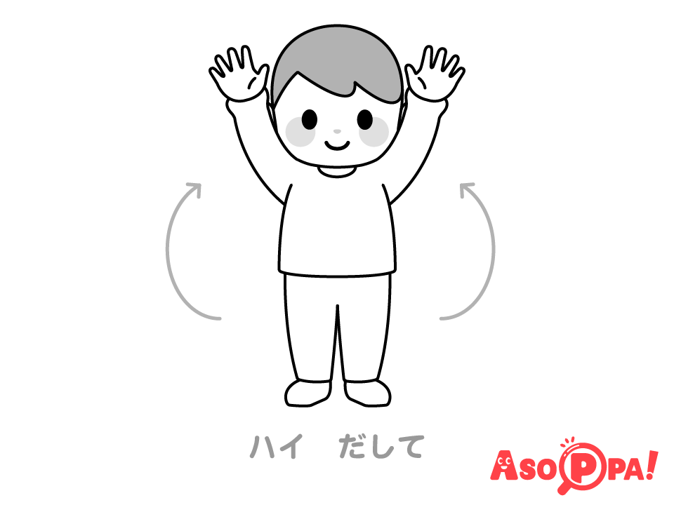 手や足を出したりひっこめたりしながら遊びます。体を大きく動かしながらやってみましょう。