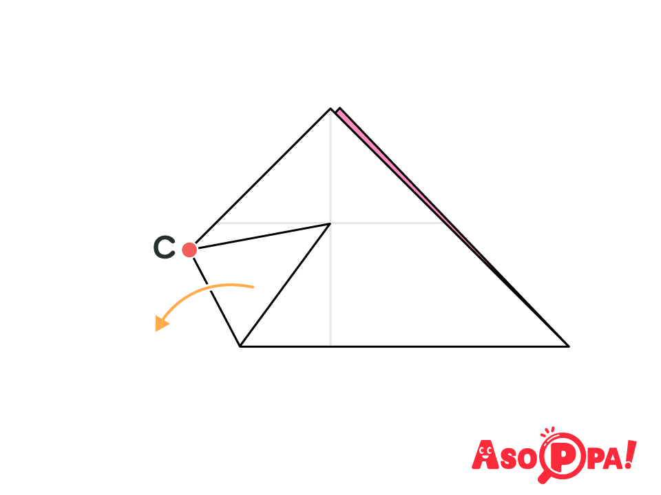 中央を支点にしてD辺をCに合わせるように折る。 -
