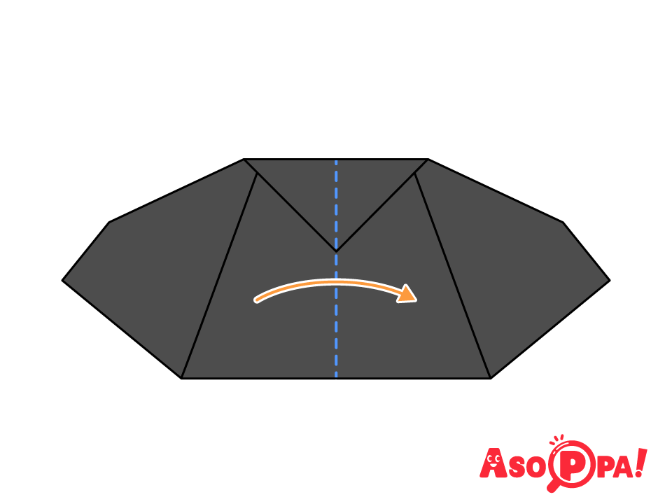 角を点線で谷折りし、折ったところをこのように直角に立てる。 -