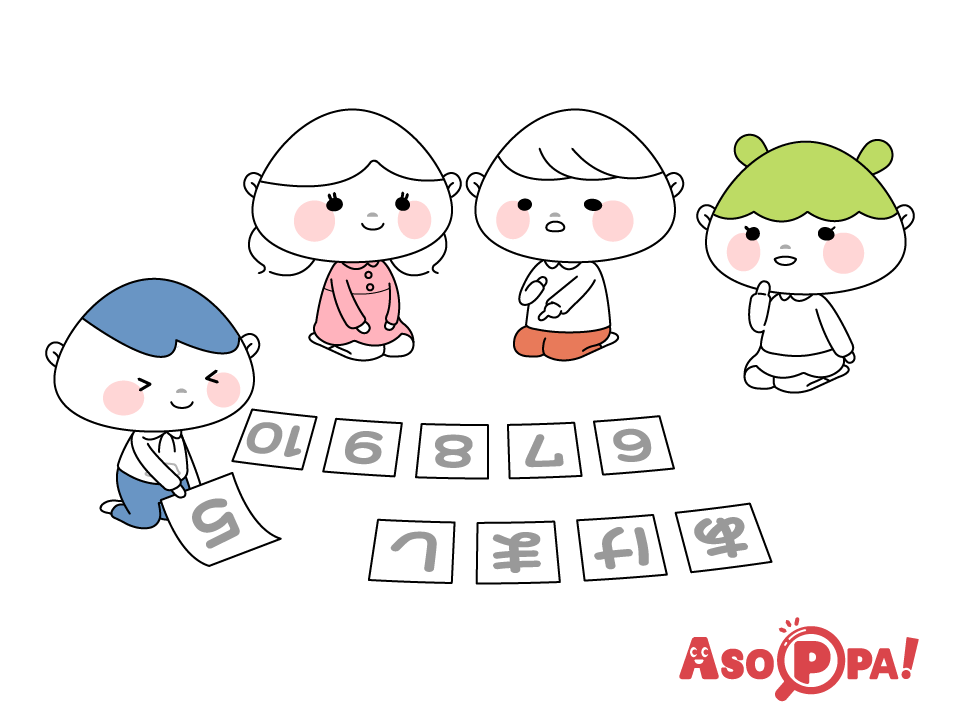 ちゃんと数字を並べられるかな?数字と文字を合わせた簡単に室内でできるあそび。