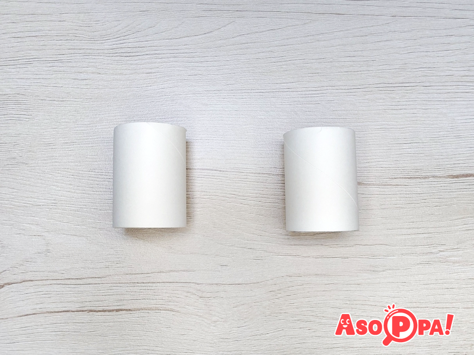 トイレットペーパーの芯を半分に切る。 -