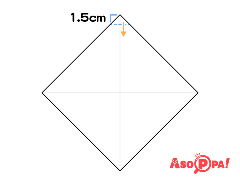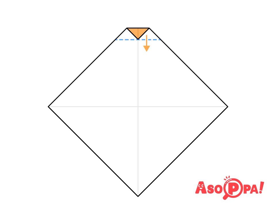 上からオレンジ部分が出るくらいまで点線で折り上げる。 -