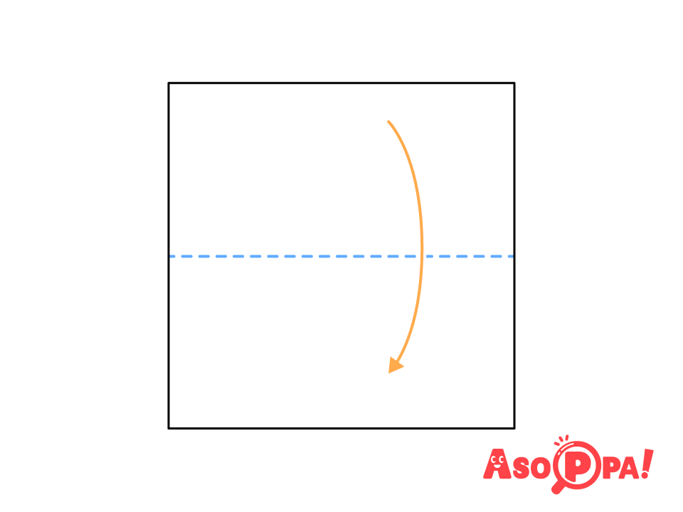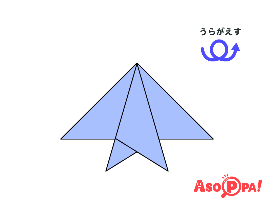 同様に点線で折り目を付け、矢印の位置から開いてつぶすように折る。 -