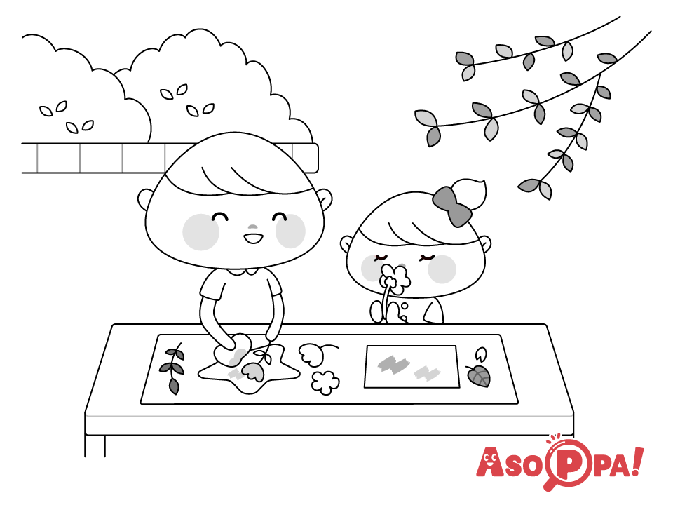 例えば年長さんと年中さんで役割を割り振っても良いです。何でこすると色が出やすいのか、こすったあとのにおいはどうかなども観察してみましょう。草花の採取は必要に応じて許可を得ましょう。