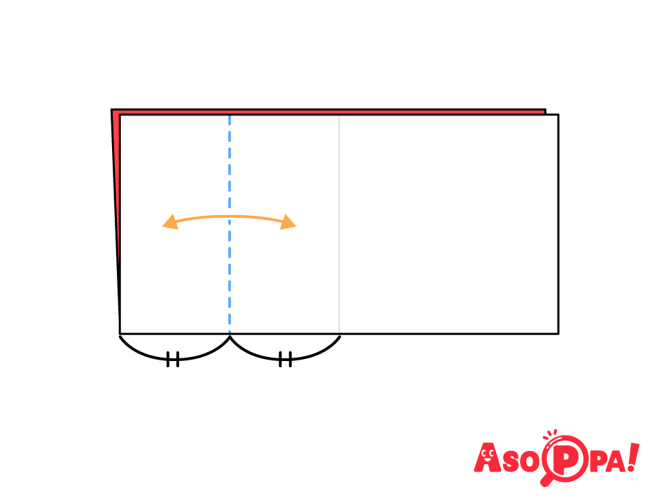 中央の線に合わせて、左側を半分に折り目を付けて開く。 -