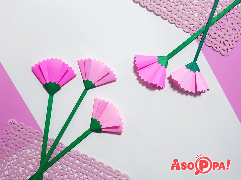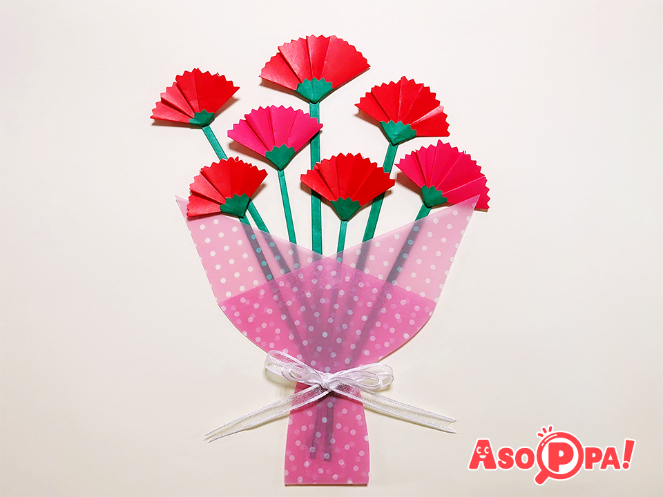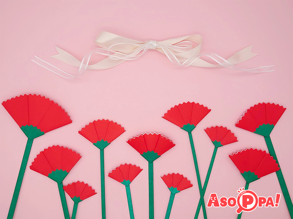 花びらが豪華なカーネーションのレシピです。いくつか作って花束にしたり、紙に貼ってメッセージカードにしたり、自由にアレンジも楽しみながら作ってみてくださいね。 -