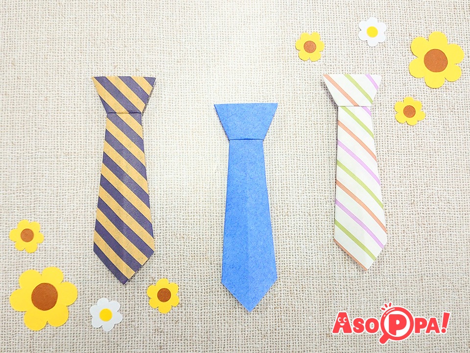 ネクタイは柄折り紙で折るととってもおしゃれになります! 父の日のメッセージカードに添えるのもおすすめです♪ -