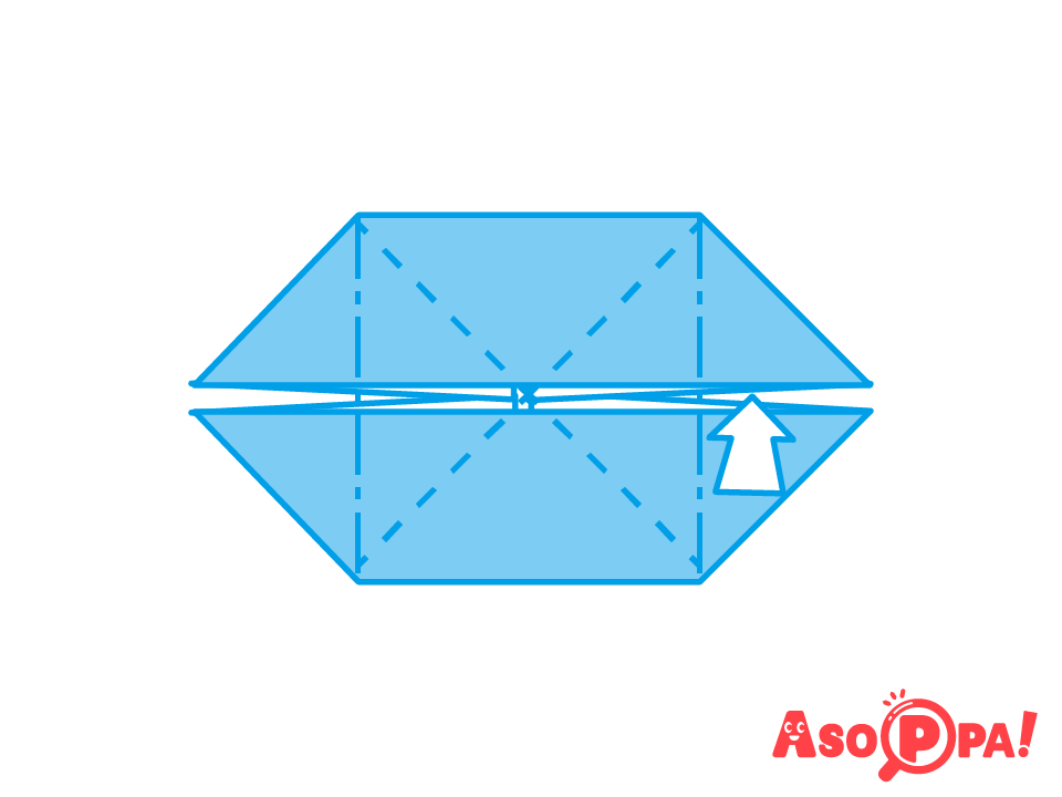 折りすじをつけて戻し、開いてつぶす -