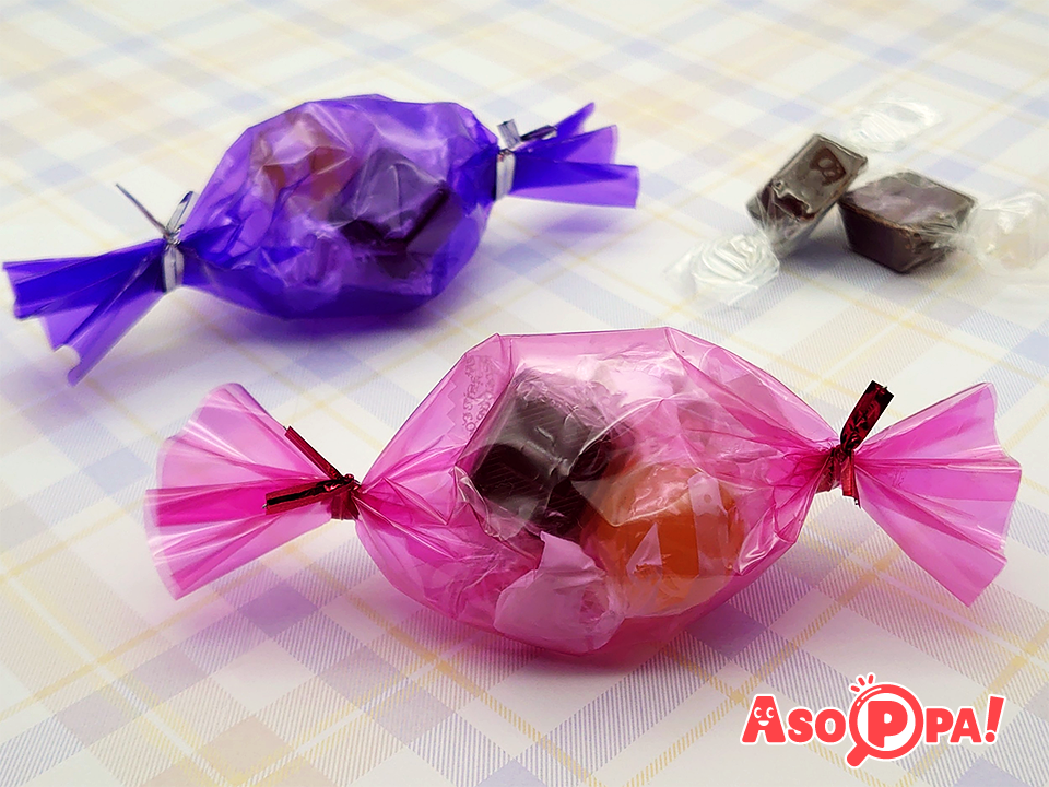 透明折り紙を使うのがポイント!中身が透けて見えるかわいいラッピングです。 -